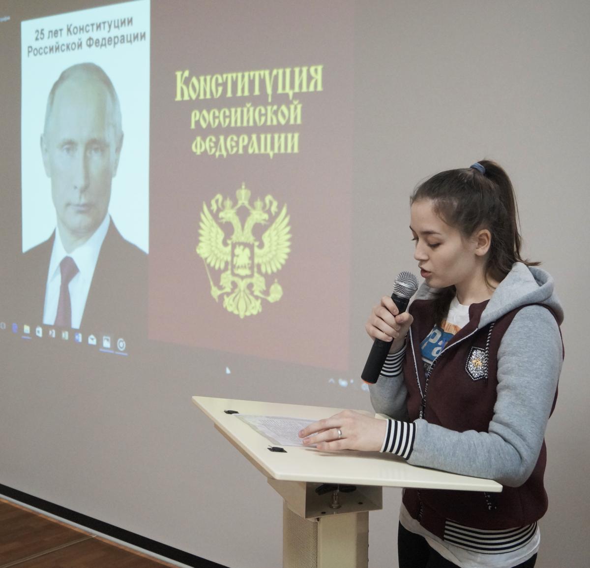 В честь этого дня в нашем институте прошла конференция, подготовленная кафедрой юриспруденции. На конференции выступил доктор юридических наук, профессор кафедры юриспруденции Калашников Сергей Валерьевич, а также студенты: Азаров Тимофей, Сирязева Анжелика и Люкшин Олег. Студенческие доклады были посвящены теме «Условия принятия Конституции и ее содержание». В конце выступлений был показан фильм «Рождение конституции».