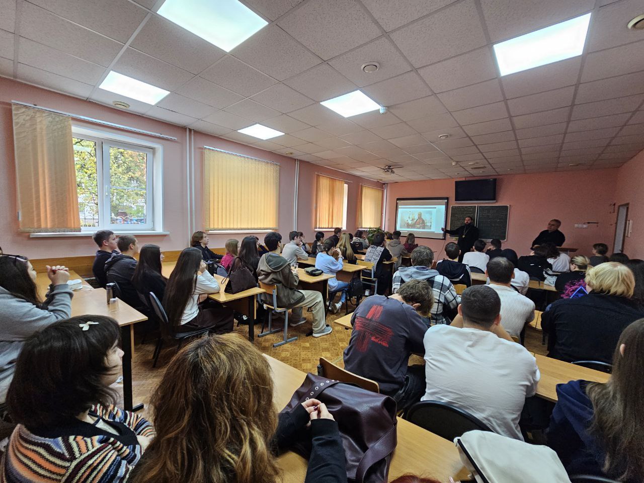 в рамках сотрудничества Видновского благочиния и Московского регионального социально-экономического института города Видное состоялась встреча клирика Богородицерождественского храма деревни Тарычёво иерея Анатолия Чорногора со студентами ВУЗА.