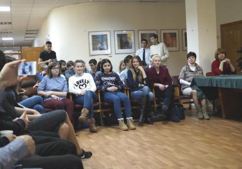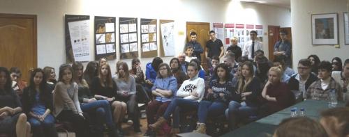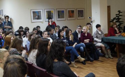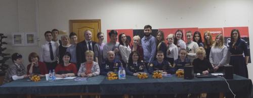 Ведущие встречи рассказали историю праздника 23 февраля. Затем перед собравшимися выступила Маргарита Валерьевна. Она рассказала о специфике работы спасателей и представила видеоролик «Есть такая профессия – Родину защищать. Подвиг сквозь поколения». Затем выступил Юрий Александрович Малавичев, который на вопрос о том, какие качества нужно иметь, чтобы чувствовать себя профессионалом, ответил, что, в первую очередь - любить свое дело и относиться к нему с полной ответственностью. Он также пожелал студентам учиться и любить свою профессию. В этом и заключается счастье человека. После этого выступил Максим Викторович Боровик, который рассказал о «Всероссийском студенческом корпусе Спасателей». Он подчеркнул, что цели и задачи организации заключаются в работе с ветеранами МЧС, а также с молодежью, детьми по вопросам безопасности жизнедеятельности.