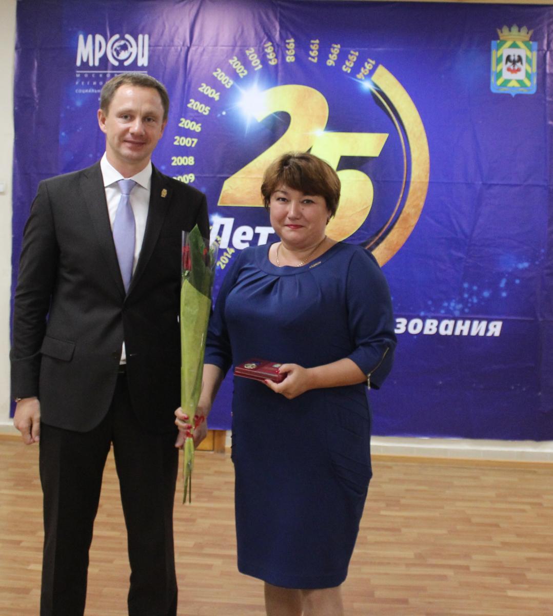 Московский региональный социально-экономический институт посетил заместитель главы Ленинского муниципального района Волков Дмитрий Владимирович. Он поздравил сотрудников института с 25-летием, а также вручил памятные юбилейные медали «90 лет Ленинскому муниципальному району» и памятные медали приуроченные к 90-летию Ленинского муниципального района Московской области за многолетнюю добросовестную работу в сфере профессионального образования.