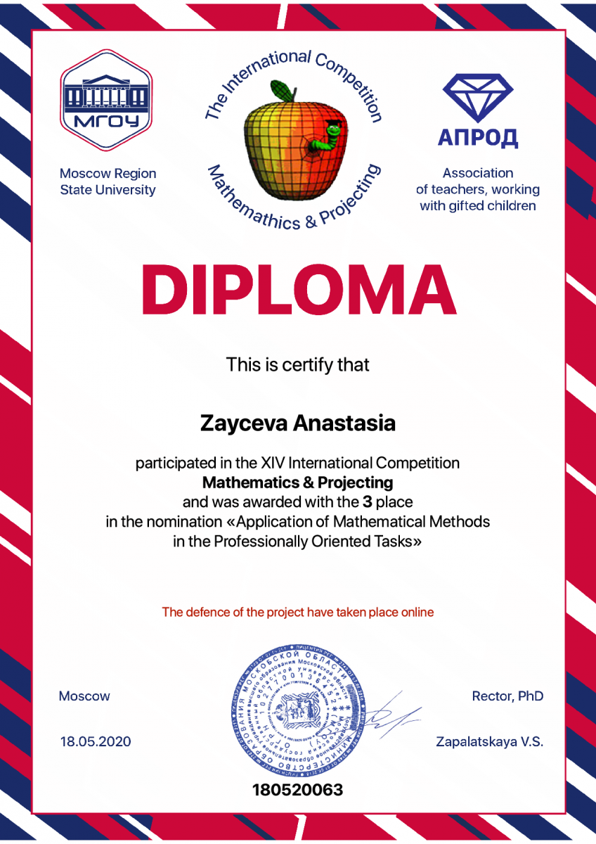 С 4-го по 18-е мая дистанционно прошел заключительный этап XIV Международного конкурса «Математика и проектирование». На конкурсе были представлены более 90 работ школьников и студентов из Болгарии, Казахстана и России.