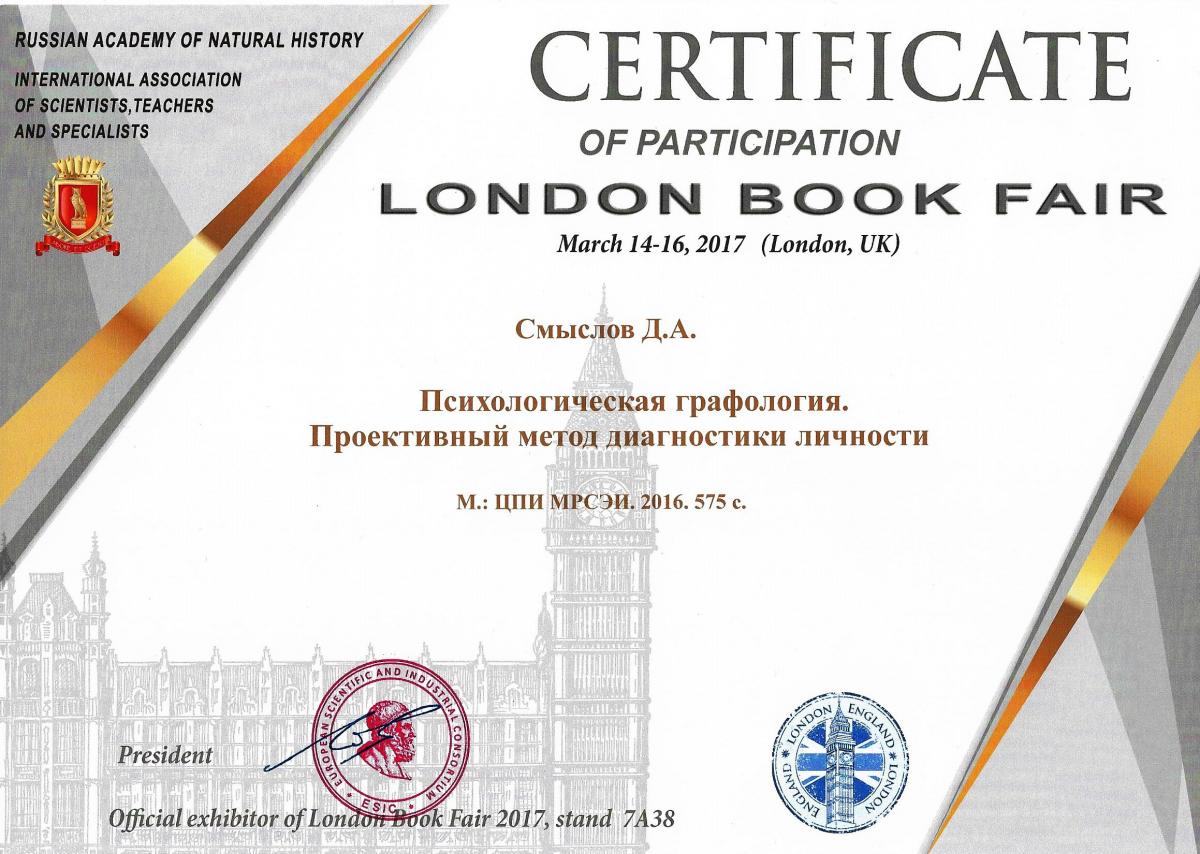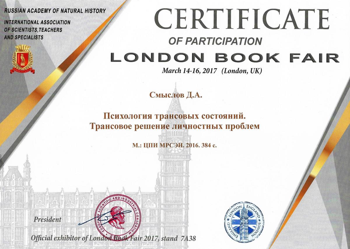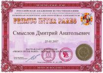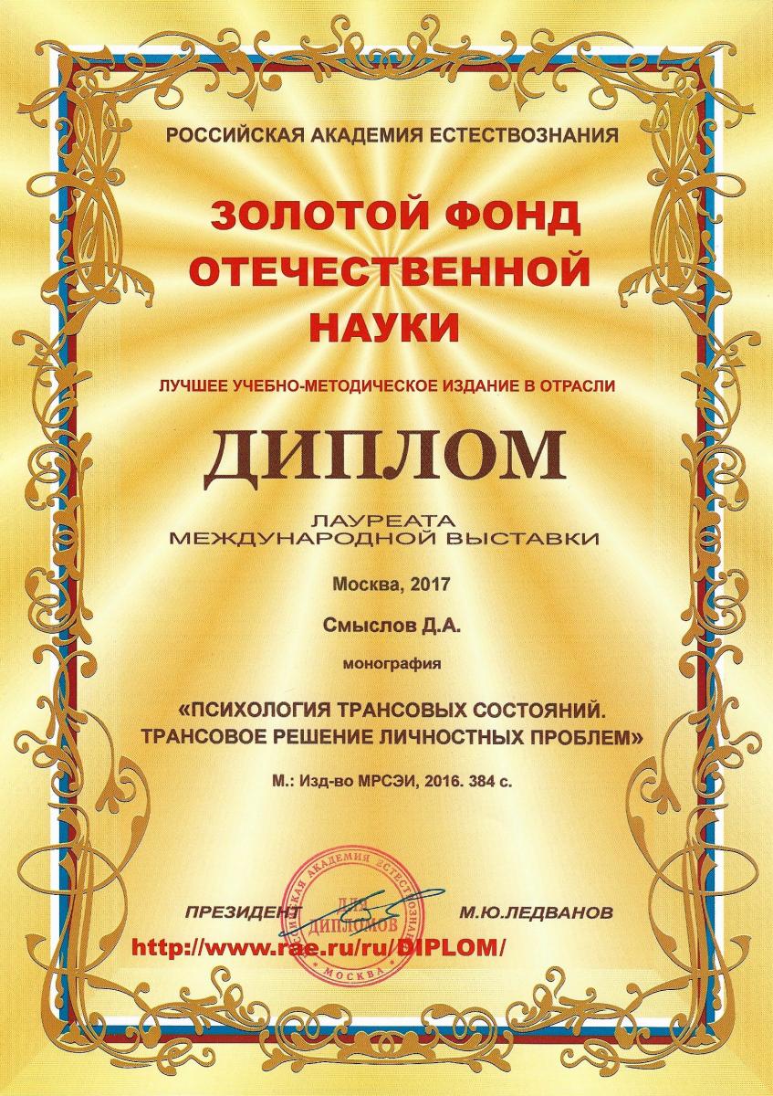 Директора центра психологических инноваций, профессора кафедры педагогики и психологии СМЫСЛОВА ДМИТРИЯ АНАТОЛЬЕВИЧА, за высокие достижения в Международных выставках