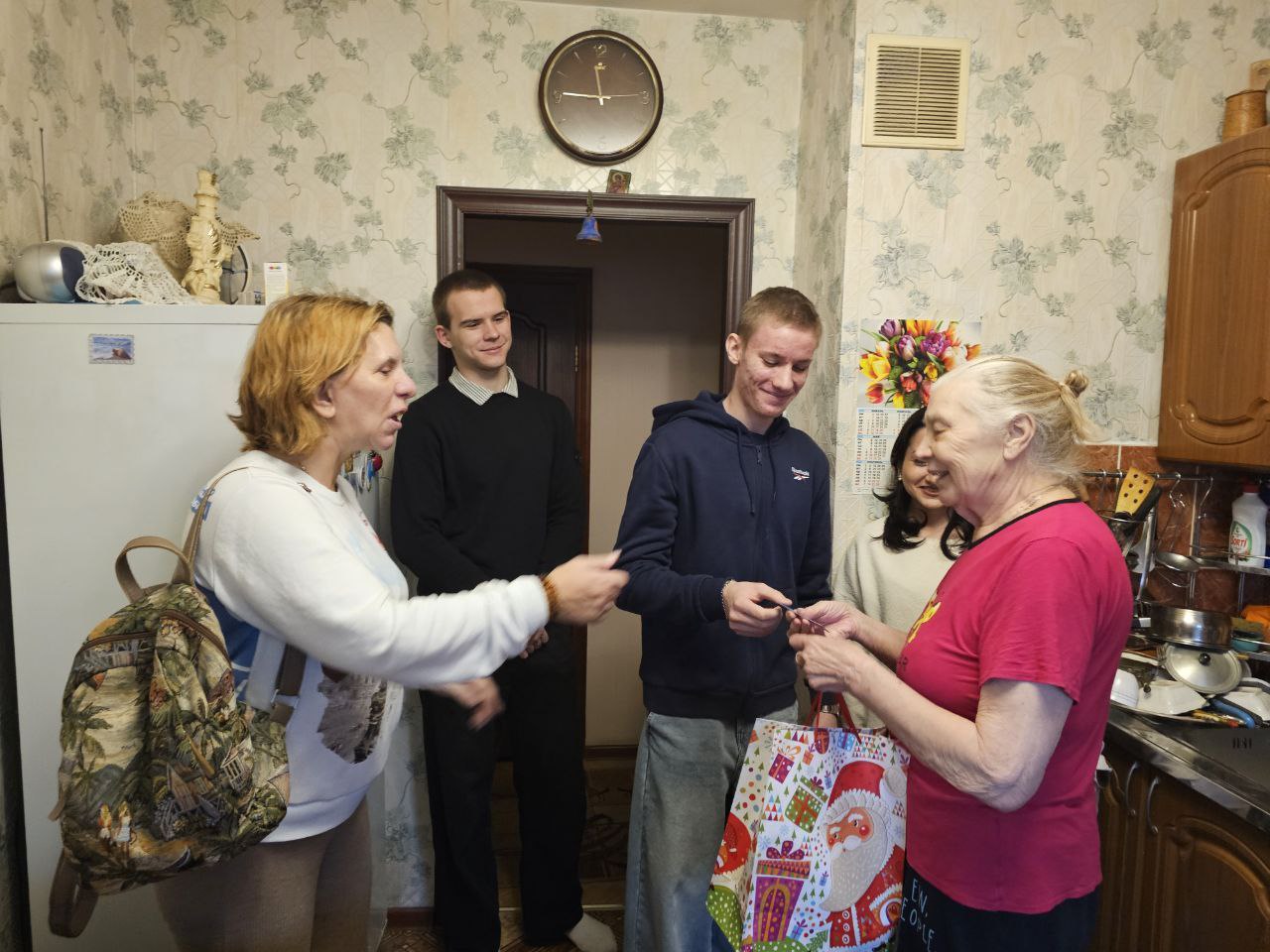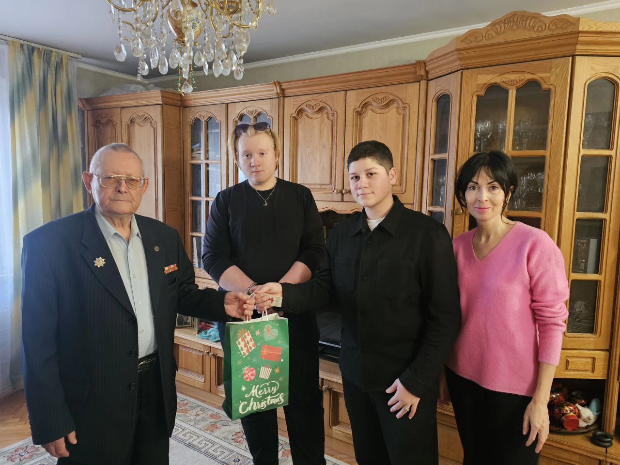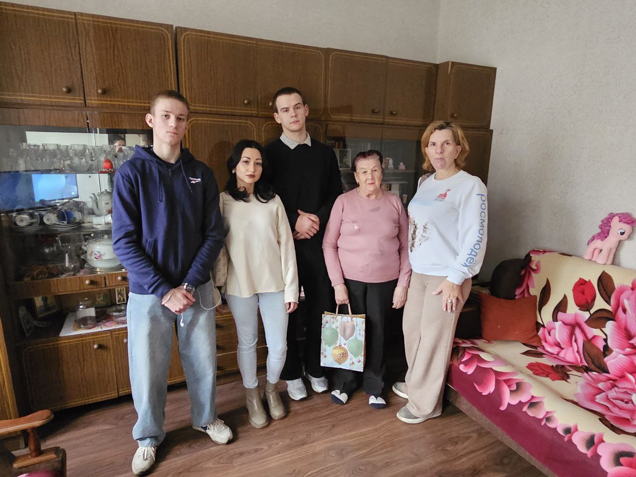 Ребята вместе с руководителем Ленинского регионального отделения волонтёров Татьяной Анатольевной Ожеговой поздравили ветеранов и подарили им новогодние подарки!