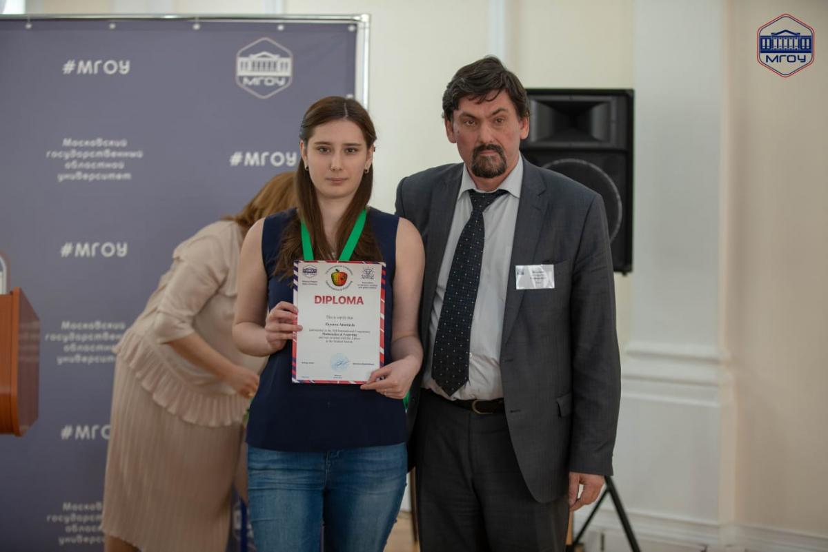 01 – 05 мая 2019 г. в главном корпусе Московского государственного областного университета проходил второй (очный) этап XIII Международного конкурса «Математика и проектирование». Победителем в номинации «Математика в профессиональной деятельности (для студентов)» стала студентка нашего вуза Анастасия Зайцева. Её работа «Изучение рынка продовольственных товаров с применением калькулятора CASIO CG-20» (научный руководитель Вострокнутов И.Е.) удостоена диплома первой степени и золотой медали.