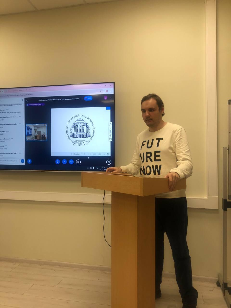 27 ноября 2025 года в МПГУ прошла Межвузовская очно-заочная научная конференция с международным участием «Современные дискурсы социологической теории и практики: социология образования». Организатором конференции выступила кафедра теоретической и специальной социологии им. М.А. Будановой ИСГО МПГУ. В качестве участников конференции – представители научно-педагогического сообщества, ведущих кафедр вузов, аспиранты и студенты. Приветственные слова в адрес конференции прозвучали от представителей Военного университета имени князя Александра Невского, Брянского государственного университета имени академика И.Г. Петровского, Московского регионального социально-экономического института (г. Видное), Московского политехнического университета, Московского физико-технологического университета и др. К конференции подключились и представители региональных вузов-партнеров, а также аспиранты и студенты из КНР и Германии. Всего в работе конференции приняло участие более 50 человек.