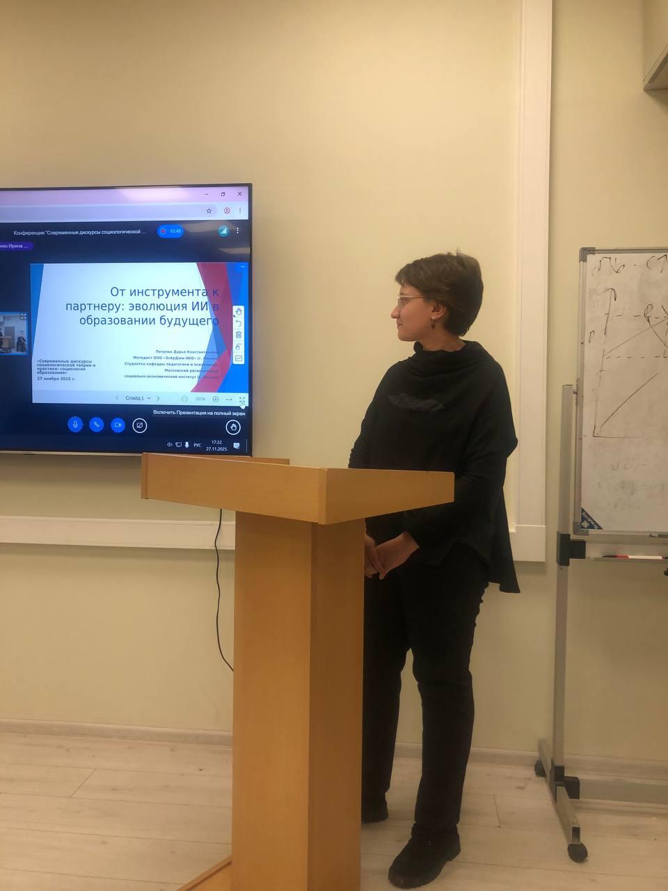 Московский региональный социально-экономический институт представляли студенты кафедры педагогики и психологии Петрова Дарья, которая выступила с научным докладом «От инструмента к партнеру: эволюция ИИ в образовании будущего» и Цехан Валентин с докладом «В глубинах бессознательного: сказкотерапия как метод психосоциальной работы». Оба докладчика сумели четко и конкретно изложить материалы своих исследований и заинтересовать всех присутствующих. На вопросы из зала они отвечали уверено и со знанием дела, что вызвало аплодисменты всех присутствующих. Кроме того, при подведении итогов конференции наши студенты были награждены грамотами, а их научные доклады были признаны одними из лучших.